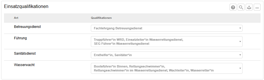 Einsatzqualifikationen sind in verschiedene Arten gruppiert.  Hier ein Beispiel: